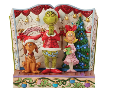 This First Edition has Jim Shores hand signed signature and is hand numbered. Dr. Seuss' story "How The Grinch Stole Christmas!" is cleverly retold with handcrafted designs created in Jim Shore's unique folk art style.