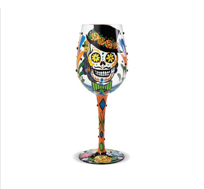 Get festive with this Day of the Dead glass celebrating the holiday's iconic sugar skulls. Designed by the US artist Lolita, each glass is mouth-blown and hand-painted using food grade non-toxic paint to create their stunning designs. Each Lolita wine glass comes packaged in a branded gift box with an individual wine cocktail recipe on both the bottom of the glass and box. Recommended hand wash only - not suitable for the dishwasher. Please note that unique variations should be expected as the product is hand-decorated.