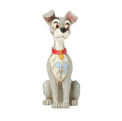 Celebrate the 70th anniversary of Lady and the Tramp with this dashing Jim Shore rendition of the Tramp. Adorned with the artist's signature patchwork and rosemaling details, he sits astutely in his new collar, ready to embrace his life with Lady.